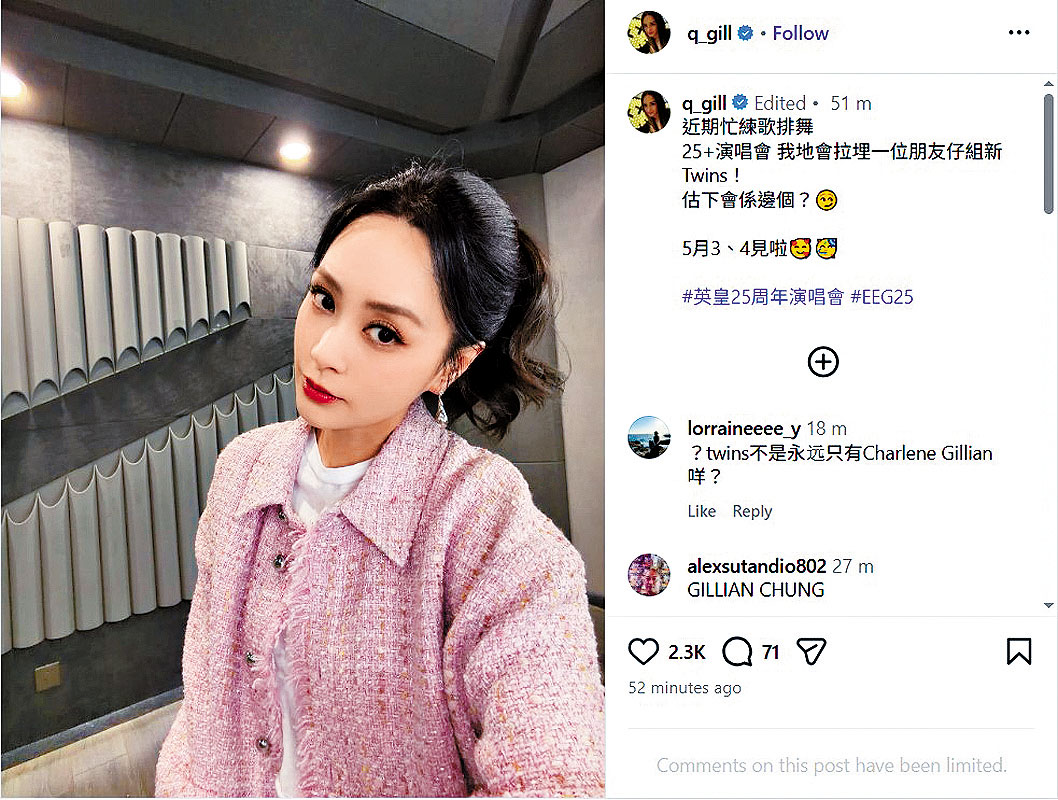 「25+ 英皇群星演唱會」終極加場5月3日今日(31日)正式公開發售,陳偉霆將在3日演出,並與霆鋒徒弟林秋楠「比舞」。放完6個月長假的張敬軒昨日出席品牌活動,對於不在演唱會名單中,坦言期待公司大騷,但因簽了其他表演合約,正努力跟客戶洽商爭取,希望能首次與Gin Lee飆歌。