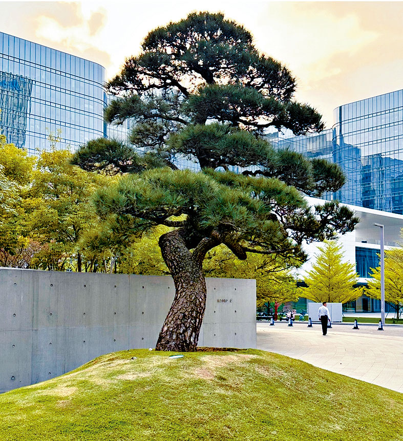 附圖為順德著名「和美術館」,入口處蓄泥石鋪上青青綠茵成小山,小山頂植形態古樸優雅松樹;憶童年曾祖父母生前居住的鄉間四合院,中間偌大曬場邊上,弄小山,植入姑婆童年遊青山寺帶回的松樹苗,數十年後予後輩共樹親近。