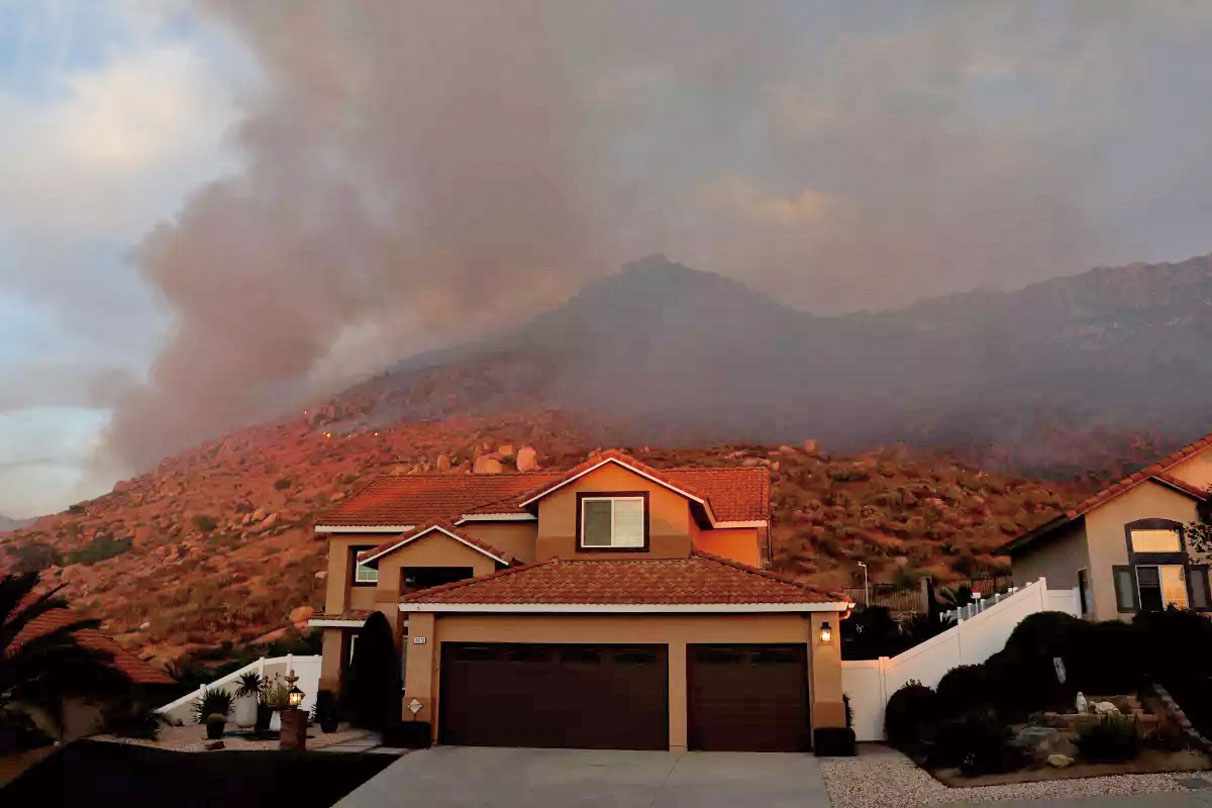 河濱縣消防局在莫雷諾谷的蘭喬貝拉戈住宅區萊德路沿線監測「泉水山火」。洛杉磯時報