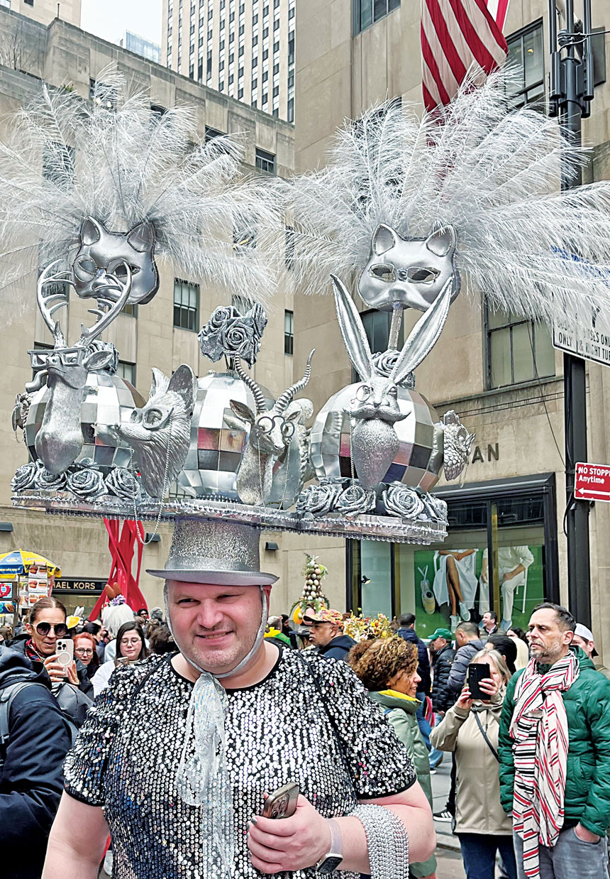 一年一度的復活節帽子遊行昨(5)日在曼哈頓中城五大道上如期舉行,雖然天氣陰雨也擋不住人們迎接大地復甦的熱情。參與者們用設計獨居匠心的帽子和服飾告別長冬的冷峻,在五大道上上演了一場迎接春天的狂歡派對。很多華人、特別是老年人也加入其中,以別具一格的裝束彰顯對生活的熱愛,也吸引了眾多行人的關注。