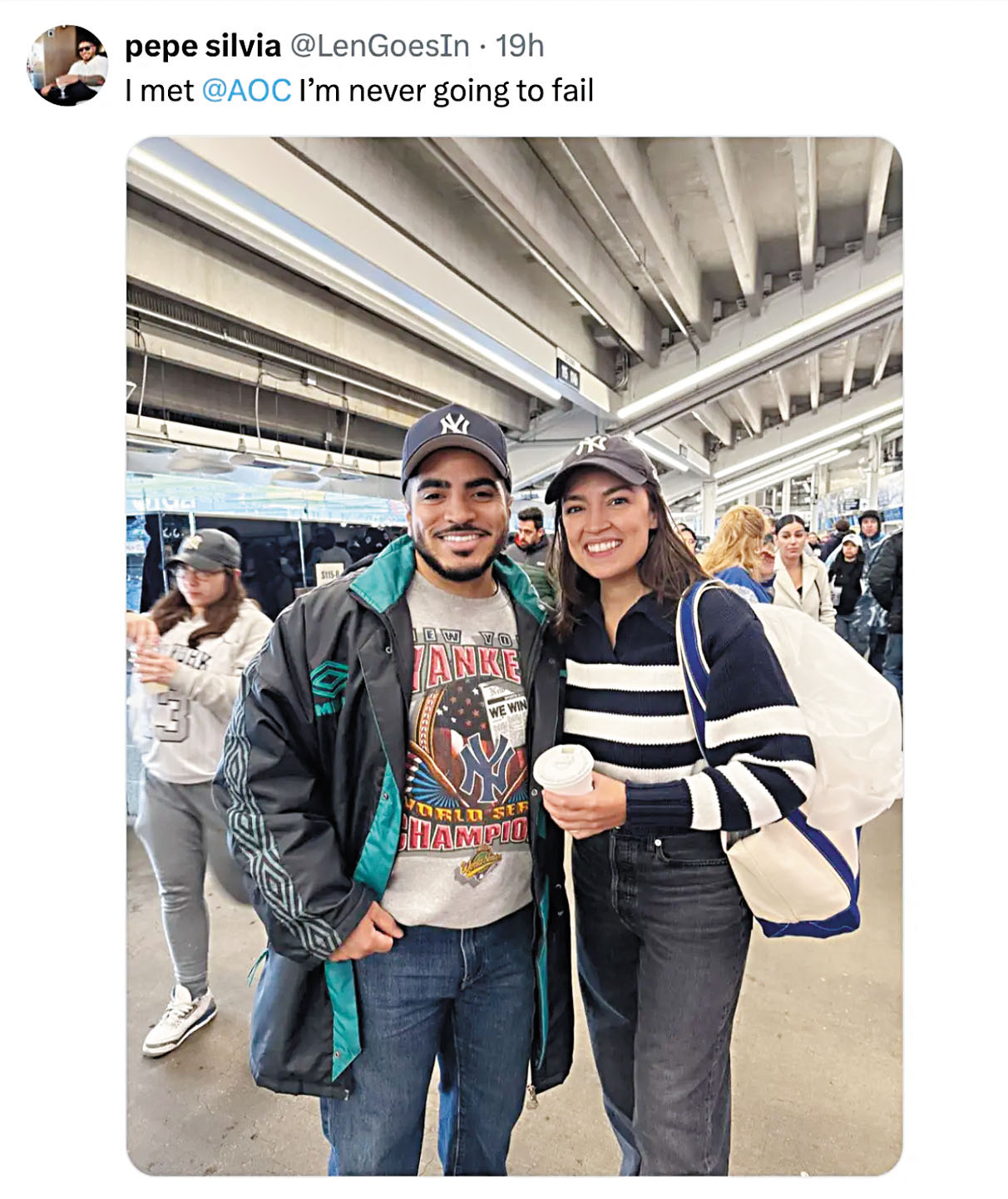 AOC在洋基球場與支持者合照。 LenGoesIn X圖片