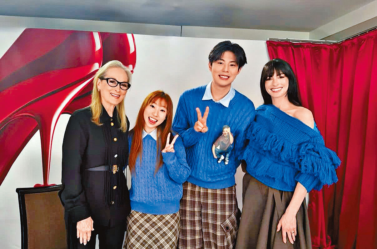 下月上映的新片《穿Prada的惡魔2》前日在東京六本木舉行首映禮,主演的梅麗史翠普和安妮夏菲維驚喜亮相,梅姨以戲中對白回應提問,相當有意思,小薯茄的麗英及朱Mic亦特別穿上藍色毛衣與兩位主角見面。文:外娛組
