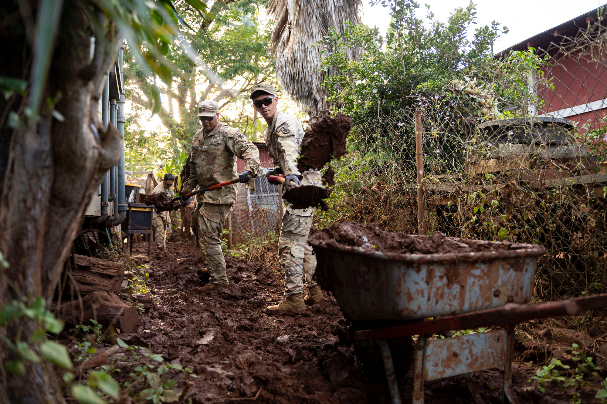 封面來源:2026年3月24日星期二,在夏威夷哈雷瓦,士兵們在洪水過後進行清理工作,用鏟子將淤泥鏟進手推車。美聯社