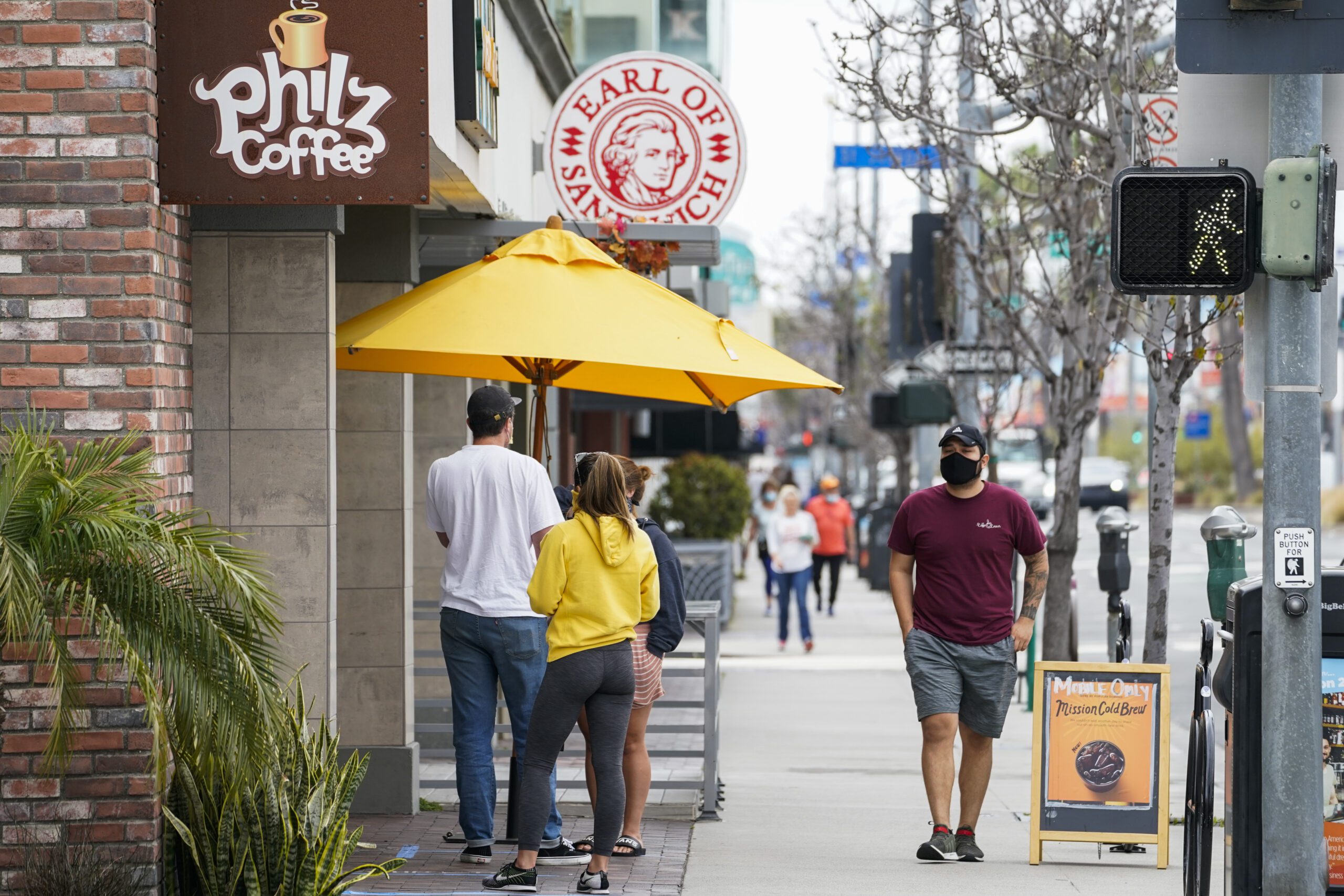 封面來源:2020年5月12日星期二,顧客在加州長灘的Philz Coffee咖啡館外排隊等候。美聯社