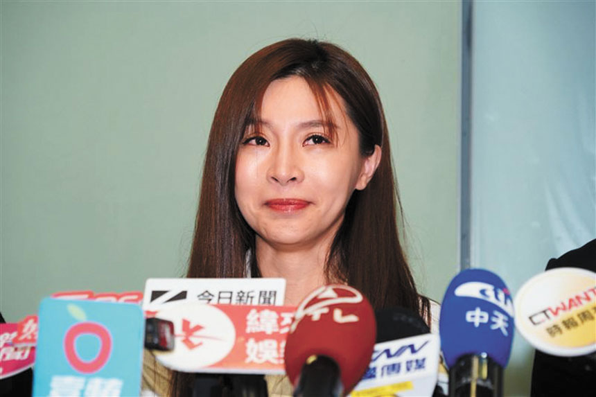 林倪安在記者會上與其他受害者通話,爆料時一度淚崩。網上圖片