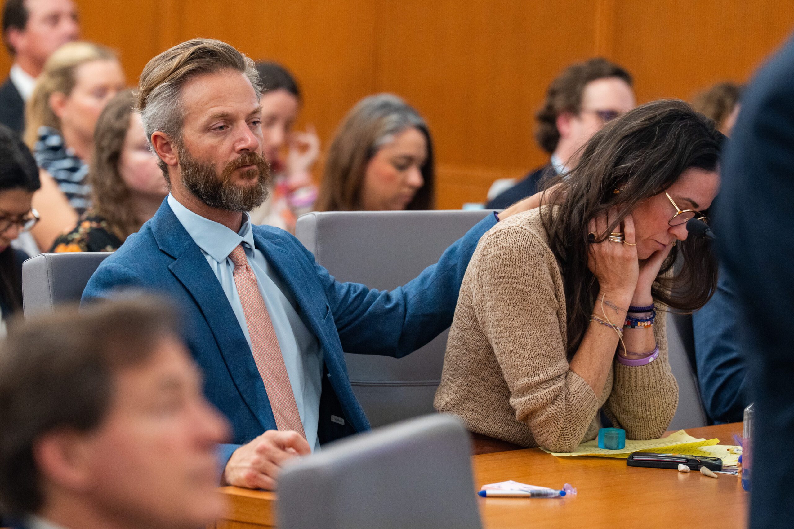 封面來源:2026年4月15日星期三,在奧斯汀第459州地方法院舉行的針對神秘營地(Camp Mystic)的訴訟聽證會上,威爾·斯圖爾特(Will Steward)和西西·斯圖爾特(CiCi Steward)夫婦正在聆聽結案陳詞。他們的8歲女兒西爾·斯圖爾特(Cile Steward)在7月4日的洪災中喪生。美聯社