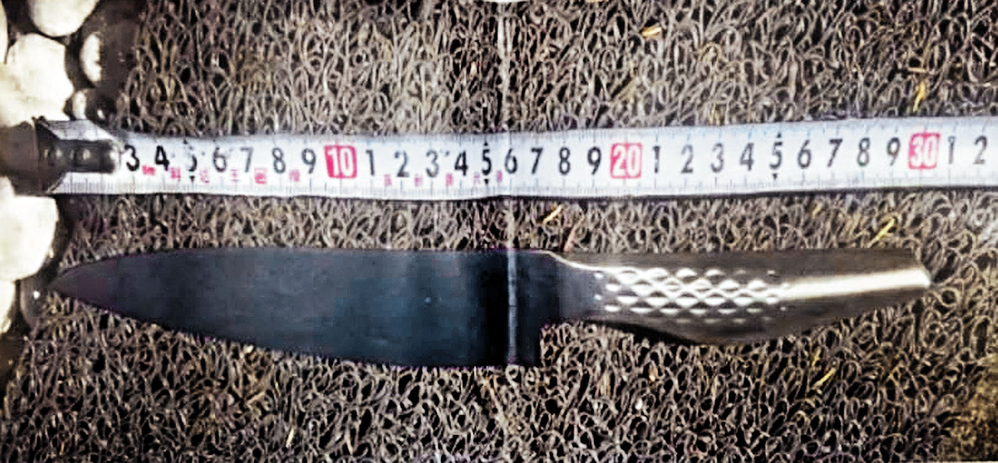 中國駐日本大使館16日舉行新聞發布會,稱近期至少接連遭受到3次恐怖威脅。小圖為中國駐日大使館展示村田晃大闖館所持刀具照片。網上圖片