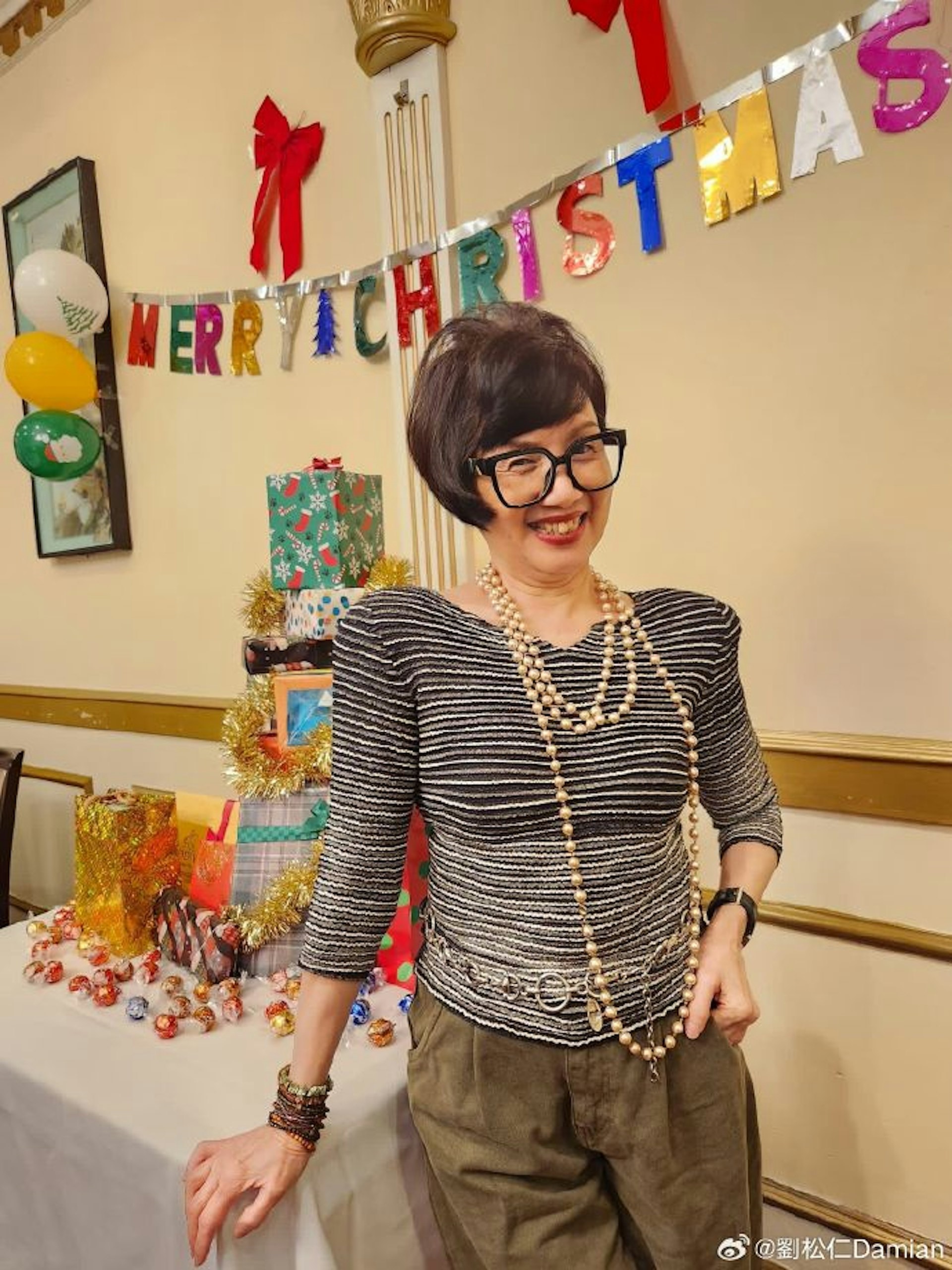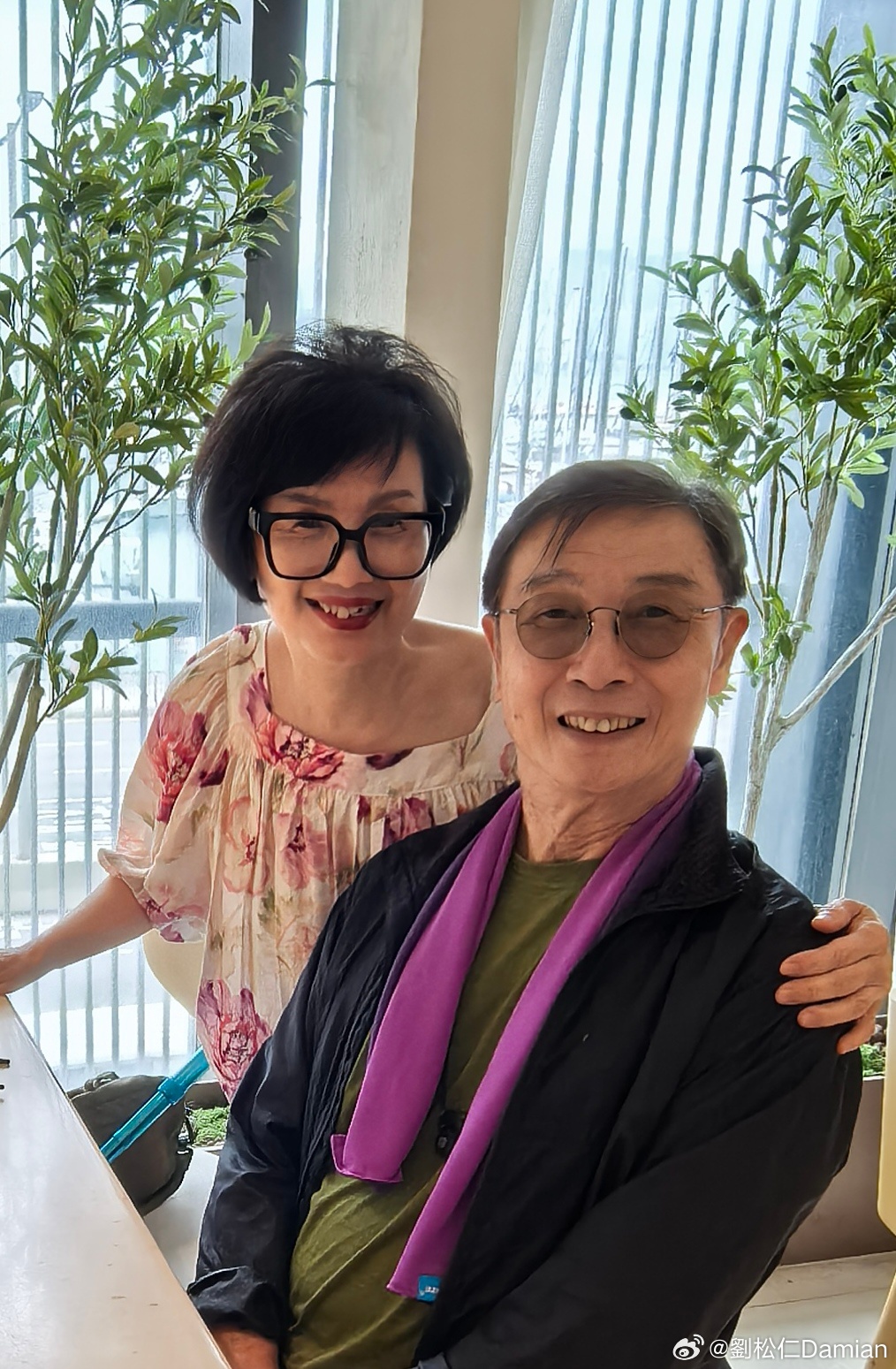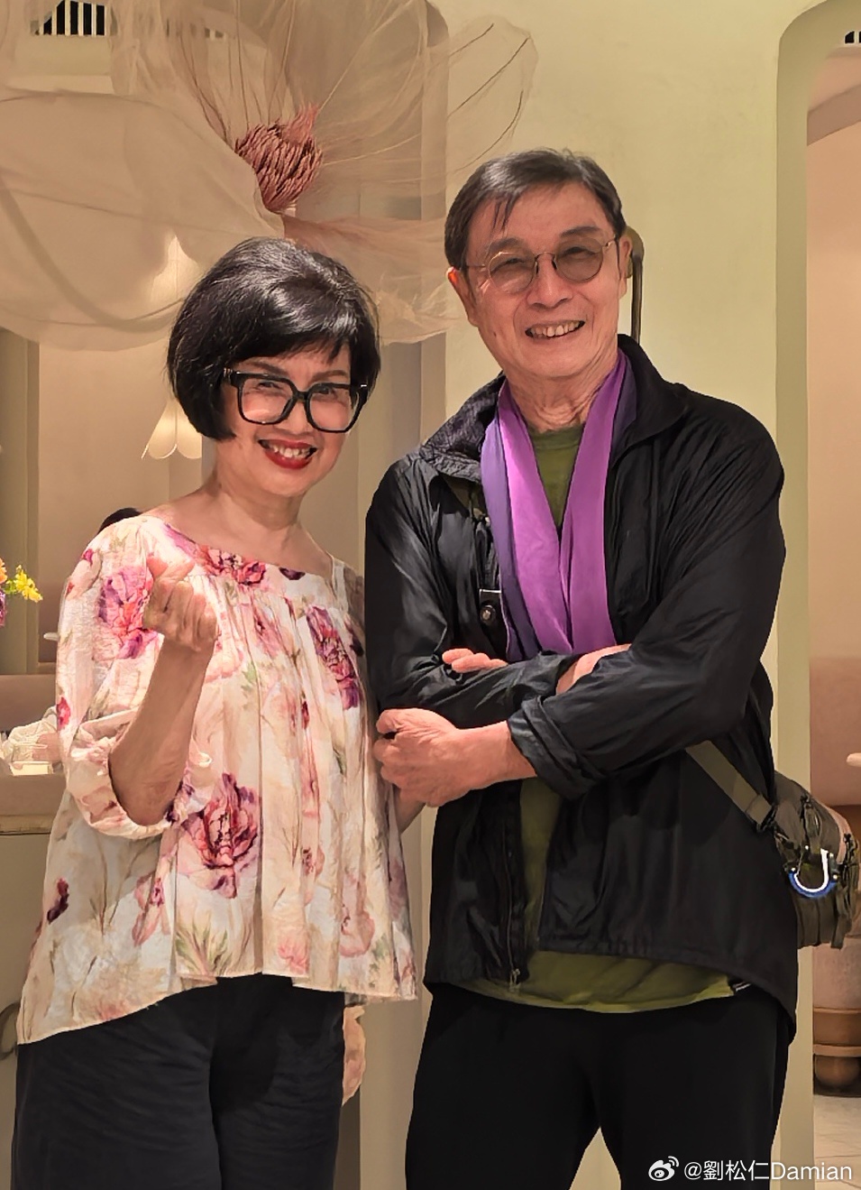 - 劉松仁在微博分享與老友褟素霞的近期合照及對方的生活照