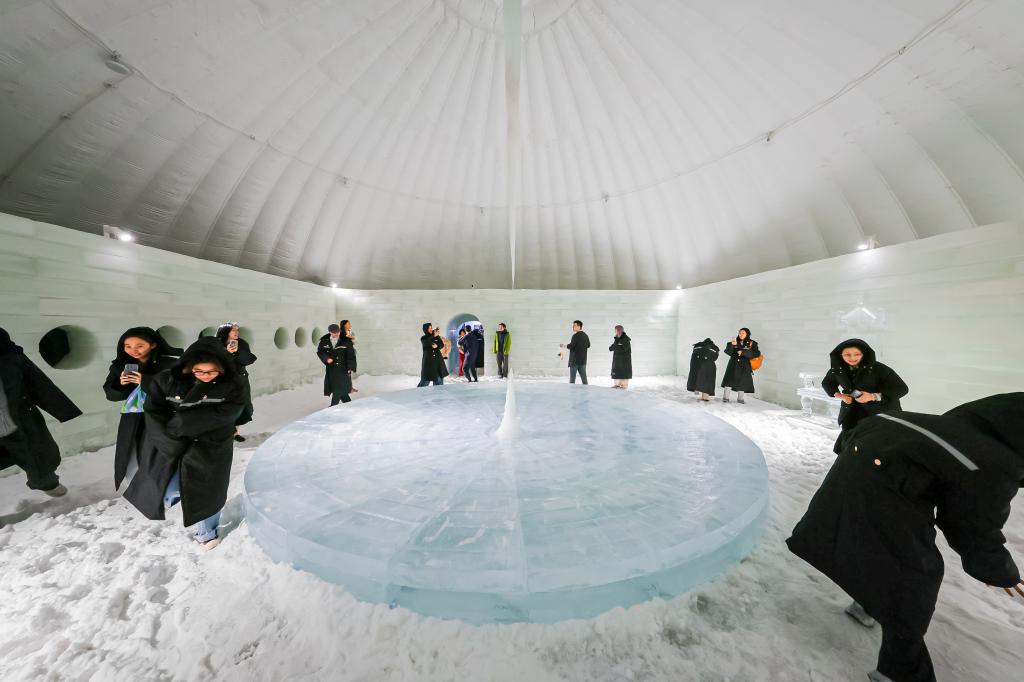 - 藝術家沈少民在深圳打造零下20度冰雪藝術展,氣膜內真實飄雪,積雪最高可達30厘米。