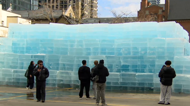 • 位於Dundas Street East附近Bond Street 81號停車場的Drake宣傳冰雕,昨(20日)晚11時許有人攀爬頂部並拒絕下來。