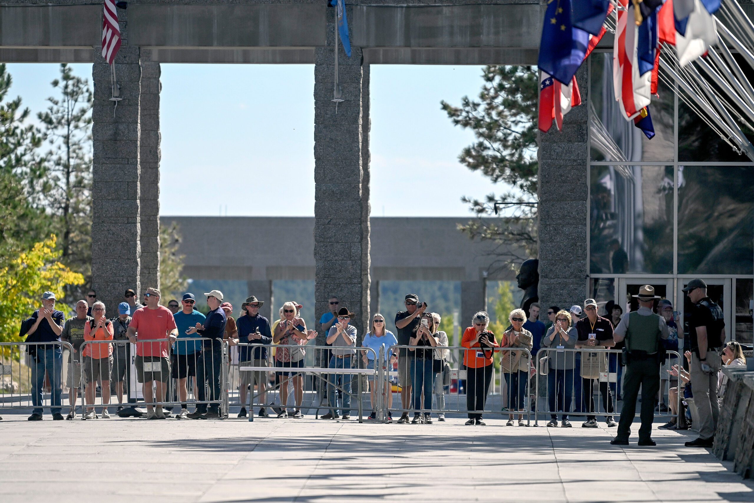 封面來源:2025年10月2日星期四,在南達科他州基斯通的拉什莫爾山國家紀念公園,一群人站在旗幟大道盡頭的安全門後觀看入籍儀式,在宣布72名新美國公民獲得公民身份後鼓掌。美聯社資料圖片