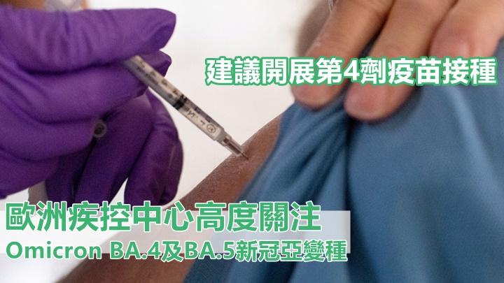 中心報告續指,目前無跡象顯示BA.4或BA.5造成的感染,會比其他亞變種嚴重,但若確診病例大幅攀升,醫院、深切治療病房負荷可能增加。中心因此鼓勵所有國家對該兩個亞變種出現跡象「保持警惕」,並敦促80歲以上長者接種第2針加強劑疫苗,也建議各國做好為60歲以上和其他高風險者打針的準備。