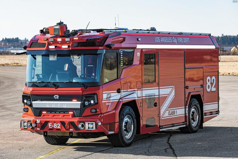 全美第一台全電動消防車週末時抵達洛杉磯市,內陸帝國蘭丘庫卡蒙加市消防局也將跟進訂購,預計明年可到貨。