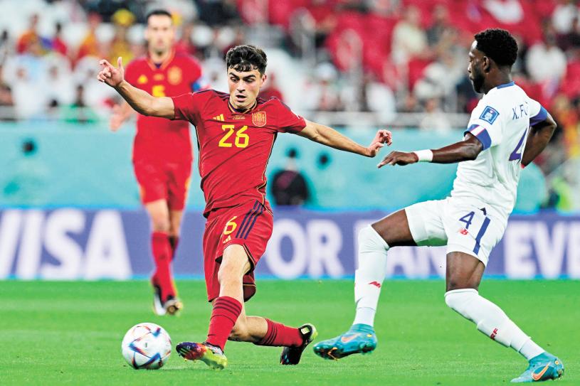 個人世界盃首秀,佩德里掌握著西班牙的進攻節奏,比賽僅進行10分鐘,他就創造出兩次絕佳機會,可惜奧爾莫與阿辛斯奧均未能將餵到嘴邊的傳球轉化為得分。縱觀全場,佩德里被賦予了極高的自由度,他有時擔任前腰直插對方腹地,有時從左後衛位置拿球組織進攻。第57分鐘,在四球領先大局已定之時,恩里克出於保護,將佩德里換下。