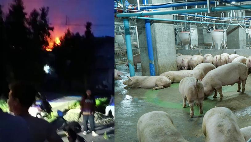 養豬場疑因非法生產煙花爆竹 ,導致爆炸發生。影片截圖