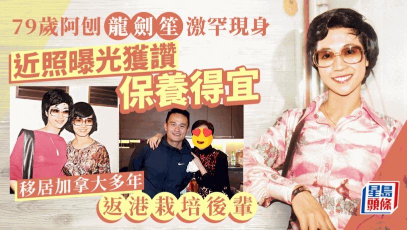 已有多年沒有公開露面的龍劍笙,明年便80歲,近年回流返港栽培後輩。在黎耀威前日(4日)在社交網公開的合照,龍劍笙保養得非常之好,比起真實年紀起碼減齡廿年。照片中見到她臉上皺紋不多,頭髮更是啡黑未見銀絲,不過就放棄多年來的大眼鏡框標誌,換上長方形眼鏡,精神非常好,網民更大讚似40出頭,只是身形比過往更為瘦削。