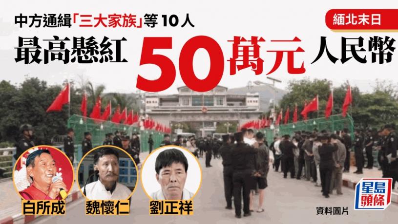 中方與緬甸聯手打擊電騙。繼高調將緬北明氏家族緝拿歸案,中方宣布,公安機關決定對白所成、魏懷仁、劉正祥等10名緬北果敢自治區電詐犯罪集團重要頭目進行公開懸賞通緝,堅決打掉犯罪分子囂張氣焰。白所成、魏懷仁、劉正祥是緬北「四大家族」當中的三大家族,74歲的白所成曾任果敢自治區主席,其子女同遭通緝。