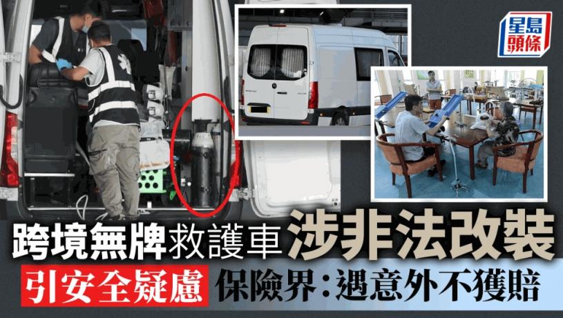 隨着中港融合,不少港人到內地工作及養老,令於出入境口岸接送傷病者的私人非緊急救護車服務需求增加。有醫療集團指,過去1年已處理逾萬宗涉及口岸接送等個案,反映需求殷切。不過,有知情者透露,除了守法的從業員,也有未領取認可牌照的懷疑「無牌經營」者,同樣提供私人救護車服務,並在車內配備壓縮氣瓶等危險品,引發安全疑慮。據知,本月初曾有「無牌」私人救護車遭警方截查,被揭發涉嫌非法改裝。有汽車業人士反映,申請認可牌照困難,盼當局能彈性處理;保險業界則提醒市民,乘搭「無牌救護車」遇意外或不獲賠償。
