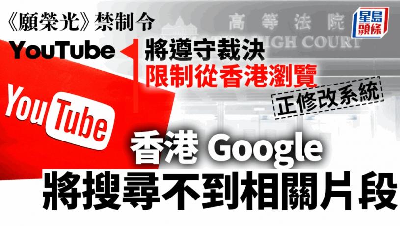 YouTube︰將遵守法庭《願榮光》禁制令 限制從香港瀏覽 惟對裁決失望