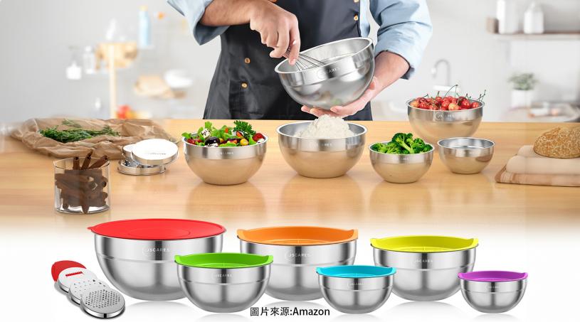 JSCARES 套裝包含 6 個不鏽鋼攪拌碗(容量分別為 4.5、3.5、2.1、1.5、1.1 和 0.7 夸脫),可以滿足測量、混合、傾倒和盛裝食物的所有需求。配備不含 BPA 的彩色密封蓋、3 個刨絲器配件、防滑底部和測量標記,真正做到一套搞定所有。每個碗均由優質不鏽鋼製成,抗凹痕、防鏽蝕,內外均採用鏡面處理和拉絲處理,既美觀又實用。這些碗不僅耐用且輕巧,操作起來得心應手,絕對是您廚房的最佳夥伴。