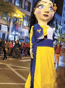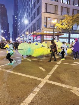 10月19日晚6時,成千成萬的民眾湧入芝市的州街與鬼魔同樂。 踏入第十届由芝加哥公園管理局與大芝加哥地區的藝術家、博物館、公立學校、舞蹈學院等機構合辦的「黑夜中的藝術節遊行」( Arts In the Dark)萬聖節大遊行盛大歡樂的舉行,萬聖節不僅是兒童的最愛、成人也喜歡過萬聖節,因為當天人們可以放下平日嚴肅的面貌,將自己重新變身回到童年無憂無慮的歲月時光。