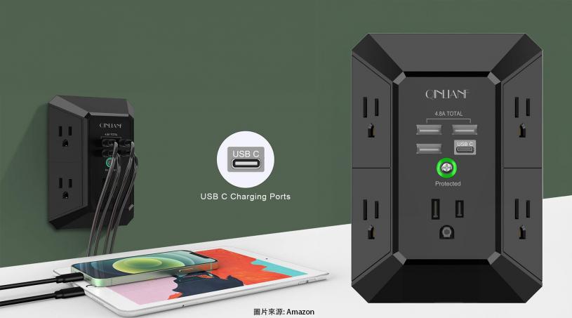 QINLIANF USB壁式充電器,只需插上,5個AC電源插孔 + 4個USB充電口一次搞定,電腦、手機、平板、耳機都能同時滿電待機。內建1680焦耳的電湧保護器,幫你的設備過濾掉突發電流,穩穩當當守護安全。USB充電接口還帶有智能識別技術,能根據設備自動調整充電速度,高效又安心。貼心設計的超大間距,給各種插頭足夠空間不擁擠。ETL認證附有30天退貨和12個月更換保障。24小時內回覆客服問題,讓您購買無憂!每天充電都這麼省心,家裡備一個超級方便!
