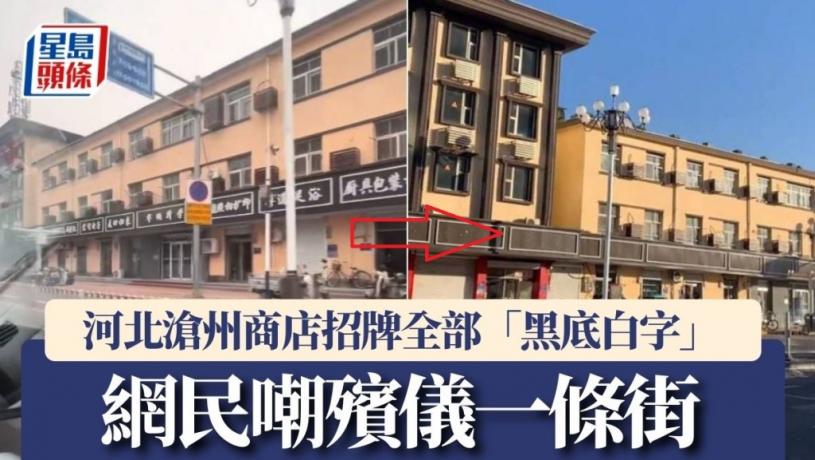 河北滄州有街道的商店,招牌全部清一色選用黑底白字設計,被民眾揶揄是「殯儀一條街」,令人經過感心寒。事件引起外界關注後,當地街道辦已在一夜之間將惹議招牌拆走,準備換上新款式。