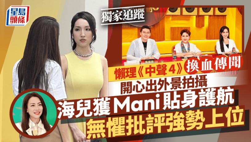 現年28歲的女高音海兒(Hedy),近來憑擔任《中年好聲音3》的評審而人氣急升,海兒除了唱功了得,更擁有天使面孔及一副魔鬼身材,難怪被網民封為「音樂女神」。雖然這位樂壇新貴極速上位,但早前張佳添的前妻黃敬佩就點名批評海兒的弱點,更指在《中年好聲音4》她是最大機會「冇得留低」的評審。面對是非,海兒似乎無損好心情,日前,《星島頭條》就捕獲她孖住金牌經理人霍汶希(Mani)開開心心為節目拍外景,得寵地位備受肯定。
