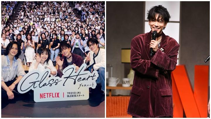 日劇《玻璃之心》昨日上架,由佐藤健、町田啓太、志尊淳、宮崎優主演,講述他們組成了全新樂團TENBLANK的熱血故事!昨日4位主角現身戲院與600粉絲一同欣賞第一集。4位主角亦變回劇中樂隊成員,現場演唱主題曲《Crystalline Echo》、插曲《永遠前夜》等,讓首映會頓時變成演唱會。佐藤健拿起咪高峰,宮崎優握鼓棍,町田啓太與志尊淳各持結他與電子琴演出,當中宮崎優的鼓技與佐藤健的歌聲,令fans十分陶醉,佐藤健簡直是「被演戲耽誤的歌手」!現場播出宮崎優劇中打鼓的片段,志尊淳驚歎:「這根本是奇蹟的美照!」佐藤健則表示:「鼓手就是要頭髮遮住半張臉才有型!」