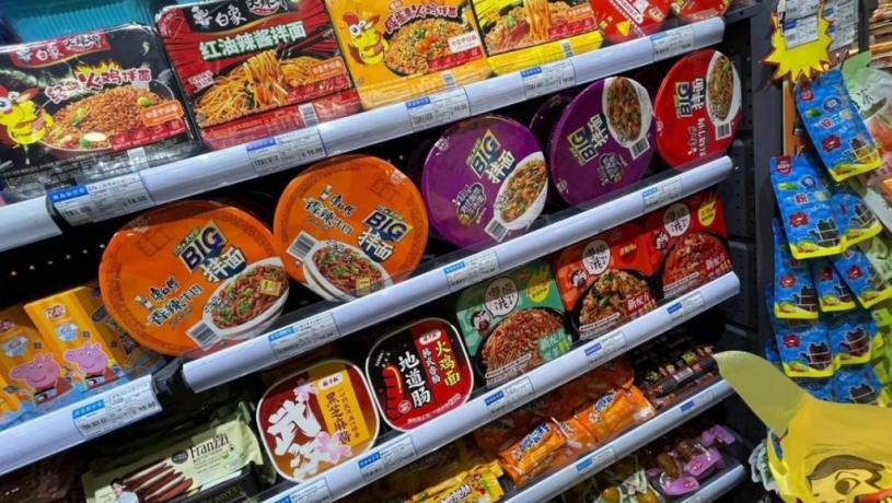 廣州東站便利店貨架上已不見泡麵,取而代之是撈麵及拌麵。大江新聞