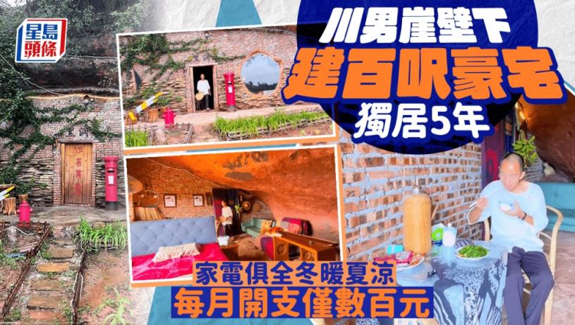 在崖壁下築「家」,還通水電煤!據封面新聞今天(19日)報道,四川自貢富順板橋鎮木橋溝村35歲村民閔亨才在一處崖壁下建造「洞居」生活,近日吸引全國各地粉絲赴現場參觀。
