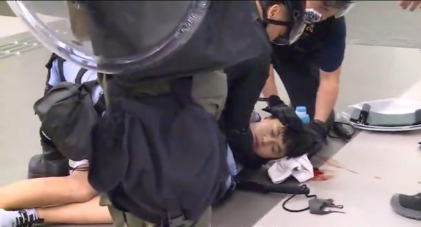 上周六晚示威者在港鐵大埔墟站破壞設施,警方驅散時拘捕多人,其中一名大埔迦密柏雨中學中六生被警員制服時,被打至頭破血流。 警察公共關係科總警司謝振中在例行記者會表示,當晚涉事藍衣男子警員在喝令不 ...