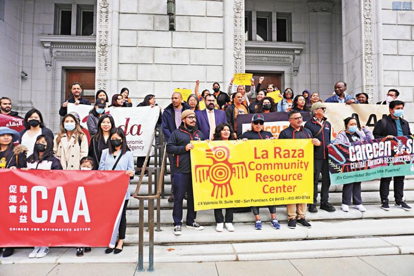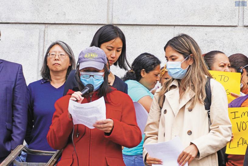三藩市加州第一上訴法庭昨日為審理「萊西(Lacy)訴三藩市政府案」舉行聆訊。訴訟由一位加州公民提訴,旨在反對三藩市教育委員選舉允許非公民家長投票。三藩市多個移民組織昨日來到法院門口集會,支持移民家長的投票權利。