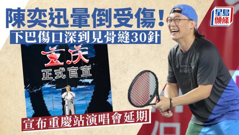 陳奕迅原定於2024年6月14-16日、21-23日在重慶舉行六場 Fear and Dreams世界巡迴演唱會,不過今日突然宣布演唱會要延期,因陳奕迅昨日中暑暈倒後受傷。據陳奕迅經理人甘菁菁(Lisa)表示,陳奕迅昨天下午於室外打網球,因天氣非常酷熱,打完波後不幸中暑休克暈倒,倒地時下巴撞地受傷。意外發生後,陳奕迅立即被送院診治,由於腮骨出現骨裂、下巴傷口深至見骨,一共需縫30多針。下巴的傷口及腮骨需時間復原,醫生估計最少需要休息三星期,所以重慶站的演唱會無法如期舉行,需延期至2025年。有關延期和補償安排,重慶站主辦方上海觀渼文化傳播有限公司,將盡快作出安排,請大家密切留意主辦單位的公佈。