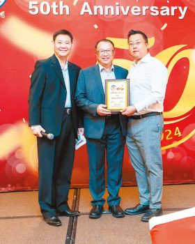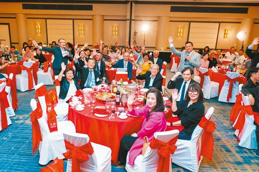 許氏參業集團總裁許恩偉與兩副總裁晚宴上向賓客祝酒。