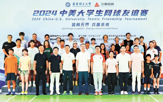 「體育無界共贏未來」2024年中美大學生網球友誼賽日前在上海旗忠網球中心圓滿舉行。新英格蘭地區著名高校達特茅斯學院、波士頓大學、塔夫茨大學、威廉姆斯學院、史蒂文斯理工學院、斯通希爾學院的網球選手們參加本次友誼賽,他們同華東理工大學、上海交通大學、浙江大學、上海財經大學、西南大學、上海大學的網球選手們通過本次友誼賽切磋球藝增進了解。