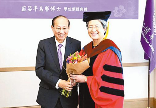 蘇姿丰(右)獲國立清華大學榮譽博士。 檔案圖片