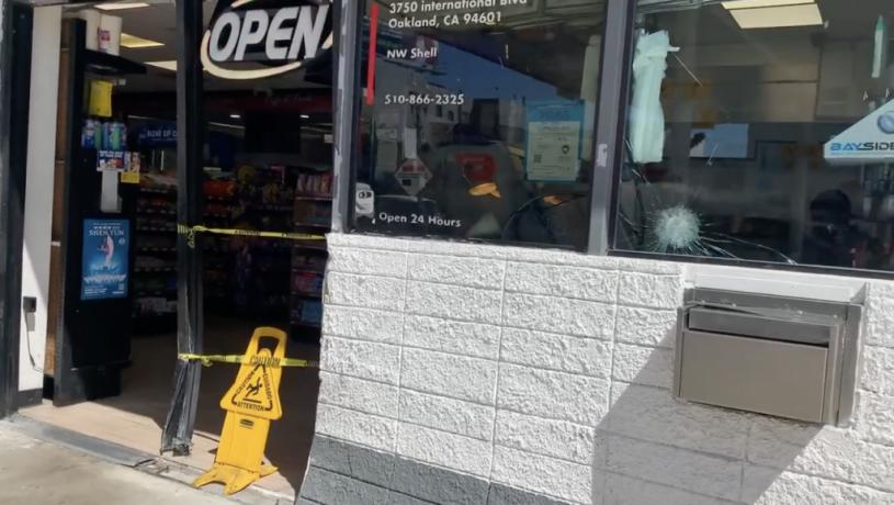 Shell加油站的公司經理告訴KTVU電視新聞,事發於周三凌晨4時左右,三輛凌志(Lexus)汽車開到了加油站的便利店,然後其中一名司機將一輛汽車撞向便利店的入口。