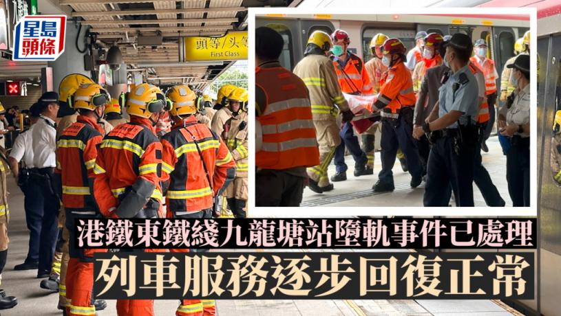 東鐵綫九龍塘站今日(16日)有人墮軌。中午12時54分,東鐵綫一列往金鐘方向列車在進入九龍塘站2號月台期間,車長見到有乘客進入路軌範圍,於是即時停車。月台上職員亦有按動緊急掣,防止其他列車進出車站,車務控制中心隨即報警及通知消防到場。