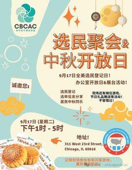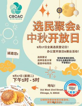 參與選民將有機會獲得月餅、燈籠等節日禮品。CBCAC辦公室地址:311 W 23rd St, Chicago,IL 60616。