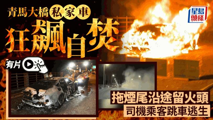 青馬大橋發生車輛起火事故。昨日(3日)晚上約11時,一輛私家車沿青馬大橋往機場方向行駛,途至馬灣出口附近突然自燃起火,司機馬上將車駛至路肩,然後與乘客車跳車逃生並報警求助,事故幸未造成傷亡。
