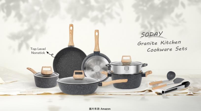 做飯的樂趣從一套好用的鍋具開始!SODAY 12件不沾花崗岩烹飪套裝,讓每道菜都變得更加美味。它採用了高品質的花崗岩塗層,烹飪起來毫不費力,不用擔心食材粘鍋,讓您健康無憂地烹飪每一頓飯。這些鍋具不含任何有害化學物質,通過SGS認證,它還擁有出色的加熱性能,鋁芯設計確保快速均勻的熱量分佈,煎炒燉煮樣樣拿手。無論你家是燃氣爐、電磁爐還是電動爐,這套鍋具通通能應對,實用性滿分。耐用的膠木手柄,隔熱防燙,搭配透視玻璃蓋,烹飪過程中一目了然。煮完飯後只需用紙巾輕輕一擦,或者直接用水沖洗即可,讓你從繁瑣的廚房清潔中解放出來,留出更多時間享受生活。SODAY 12件不沾花崗岩烹飪套裝包括9 英寸/11 英寸煎鍋、11 英寸/4.5QT 帶蓋炒鍋、4.3 QT 帶蓋平底鍋和蒸鍋、1.5 QT 帶蓋平底鍋以及矽膠鏟勺和鉗子,非常適合你的日常烹飪。