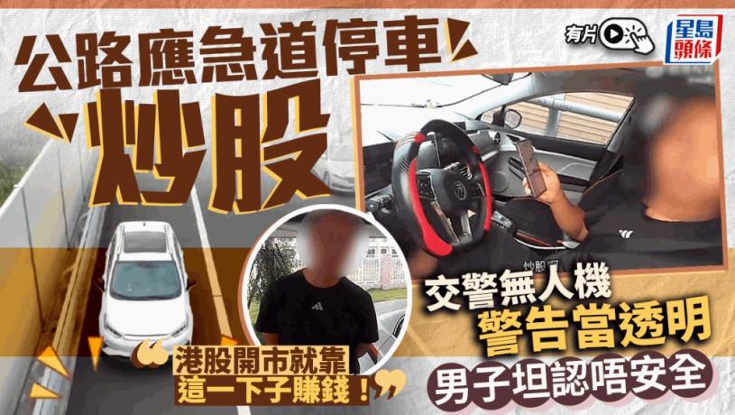 停應急車道炒股,司機稱想冒風險(賺一筆)。