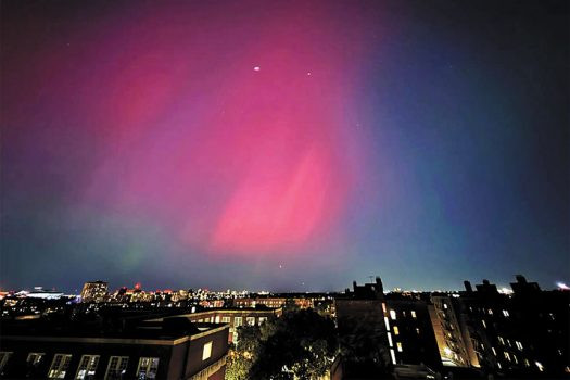 專家稱,擴大的極光或會在世界部分地區持續數天,但紐約市的瑰麗光芒應該會在11日晚上消失。本報訊