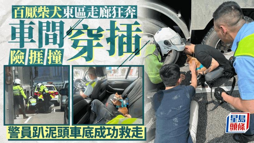 東區走廊車來車往,今日(14日)早上有一隻柴犬在馬路上狂奔,又在車輛間穿插,險象橫生。警方接報到場,指示現場車輛減速,並封鎖一條行車線,最終在泥頭車底救出狗狗,結束一場既驚險又暖心的救狗記。