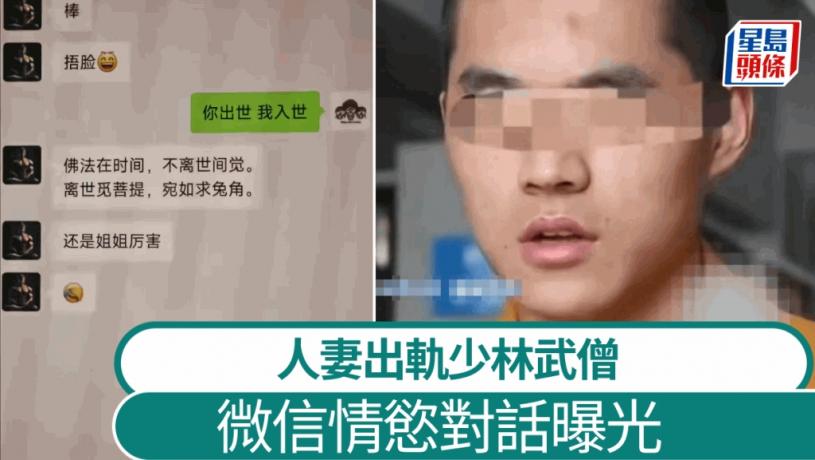 人妻出軌武僧醜聞曝光後,曾於社交平台透露,夫妻長期異地分開,自已照顧兩個孩子,丈夫鮮會提供情緒照顧。少林寺表示,涉犯色戒的武僧確實是在寺內剃度,但已經離開寺內無法掌握其行蹤。少林寺己決定將該名武僧除名,並且永久禁止他再重返少林寺。