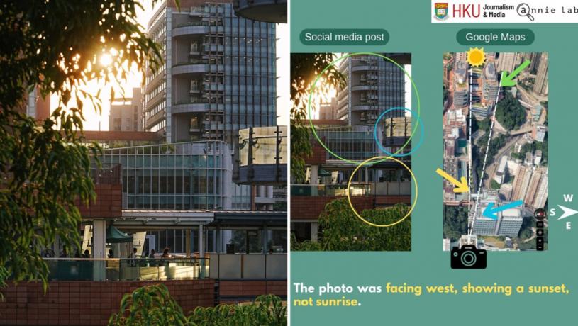 港大事實查核組織憑相中建築物,判斷出相片拍攝位置。ANNIE LAB facebook圖片