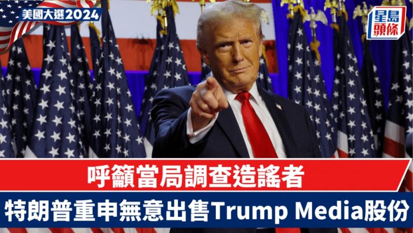 特朗普在Truth Social上發布聲明,指「有虛假、不實,且可能違法的謠言及/或聲明,或許是由市場操縱者或沽空人士發出的,聲稱我有意出售Truth的股份。那些謠言或聲明都是虛假的!我沒有出售的意圖!」他要求有關當局,立即對散佈虛假謠言的人士進行調查。