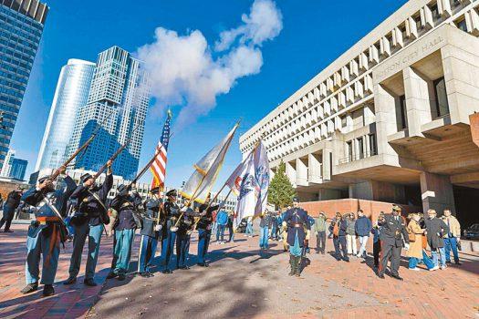 遊行隊伍一路步行到波士頓市政廳廣場。吳弭市長與退伍軍人服務專員聖地亞哥(Rob Santiago)、市議員和退伍軍人在廣場上當眾簽署了一項命令,調整波士頓退伍軍人的財產稅豁免,以更好地適應不斷增加的生活成本。