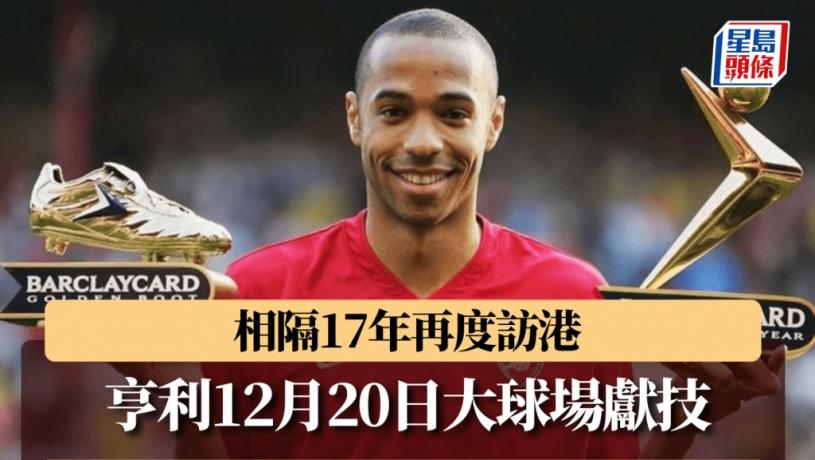 亨利上次來港比賽已經是2007年,當年他隨巴塞隆拿訪港與觀瀾湖邀請隊(傑志愉園聯隊)踢友賽。17年後,他跟隨巴塞傳奇隊訪港與皇馬球星隊比賽,12月20日晚上8時在大球場出擊。